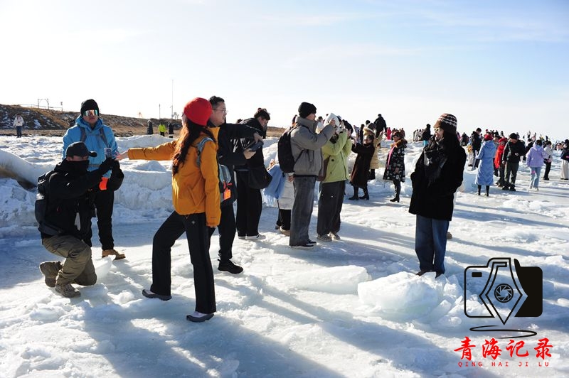 冬日的青海湖宛如梦幻之境,厚达60厘米的冰层在阳光照耀下泛着宝石般的冰蓝光泽,自然形成的冰裂纹理如抽象画作,成为学子们镜头中的绝美背景。主办方贴心准备便携式氧气、暖宝宝、围巾手套等御寒物资,搭配姜茶与巧克力,让参与者安心畅享冰雪乐趣。学子们踏冰而行,近距离观赏冰泡奇观,沉醉于“千里冰封”的雄浑意境。